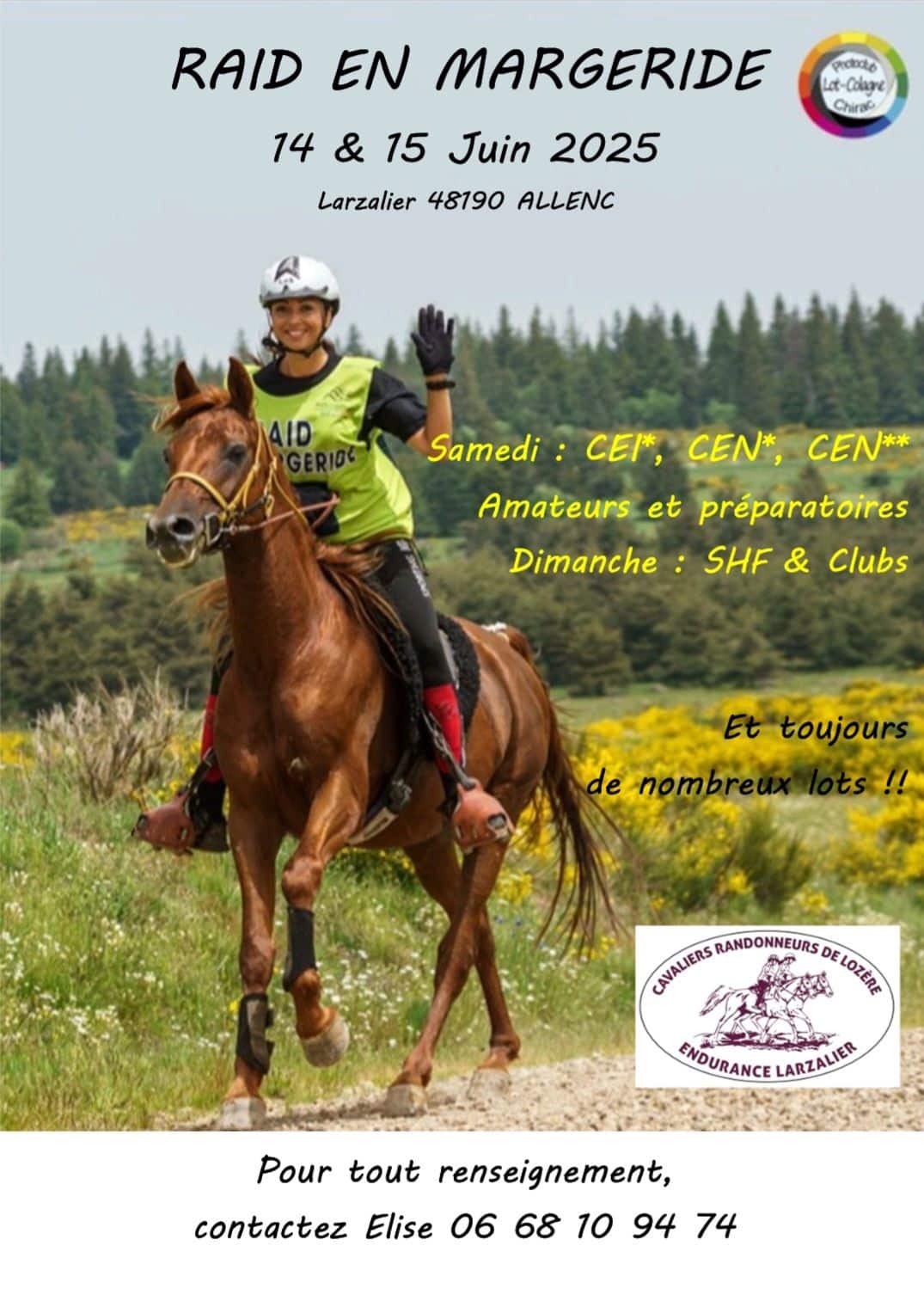 Endurance International : CEI2* 70+(2), CEI1* 100, CEI2* CIM, CEIYJ2* 120-130, CEIYJ1* 80-110 Endurance national : Amateur Elite, Amateur 1 …